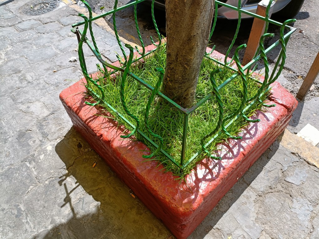 Cada elemento es diferente y fue hecho por distintas personas. Por ejemplo, esta jardinera: