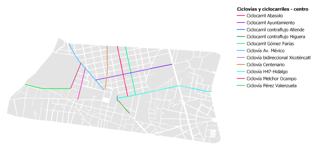 Para efectos prácticos, los ciclocarriles no sirvieron de mucho y con el paso del tiempo quedaron borrados. Sobrevive la señalización vertical que, sin los ciclocarriles no se entiende muy bien. Algunos podrían pensar que un buen comienzo sería recuperar los ciclocarriles. Me parece que, en general, éstos sólo terminan reservando el espacio para las segundas filas de los automóviles y no para la bicicleta. Aún así, verán que sí hemos planteado ciertos ciclocarriles, que ameritan la reflexión y discusión calle por calle.